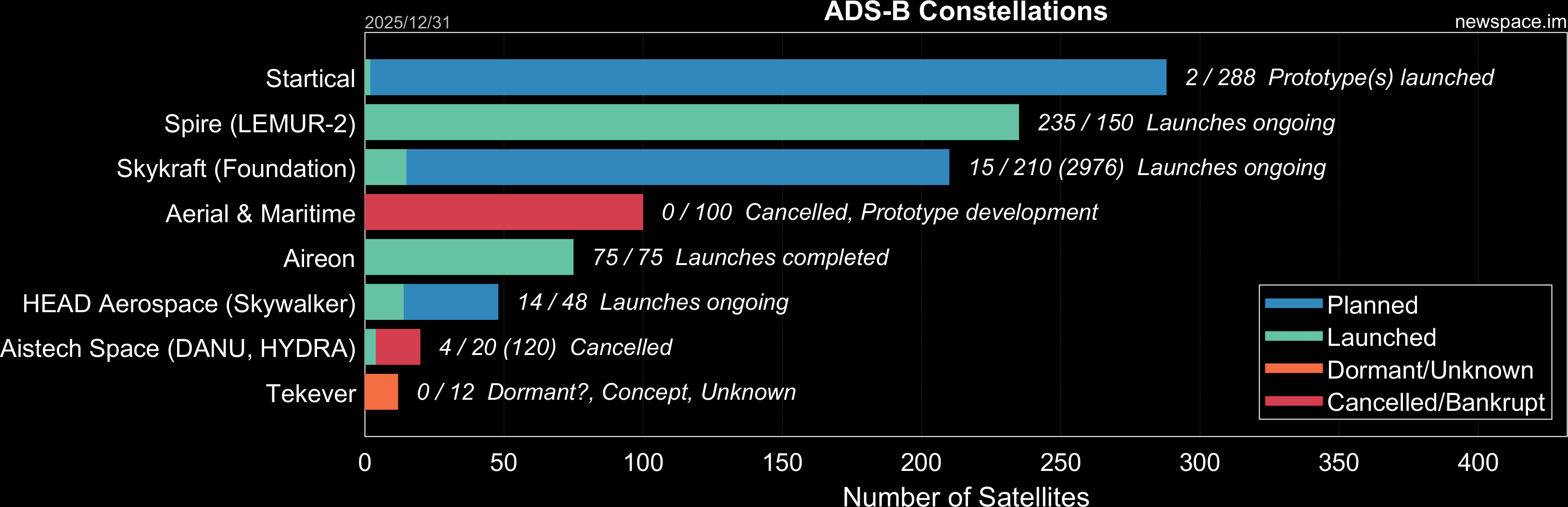 | Aireon | 75 / 75 | 2017 | Hosted | ADS-B | $50M | |