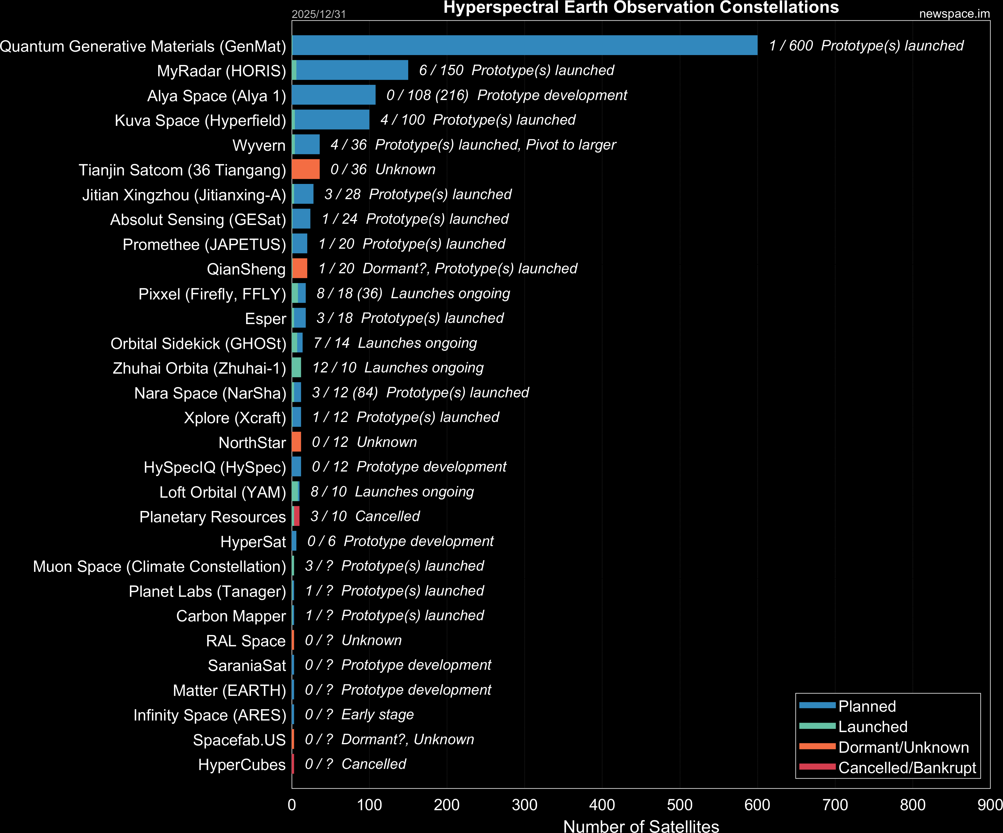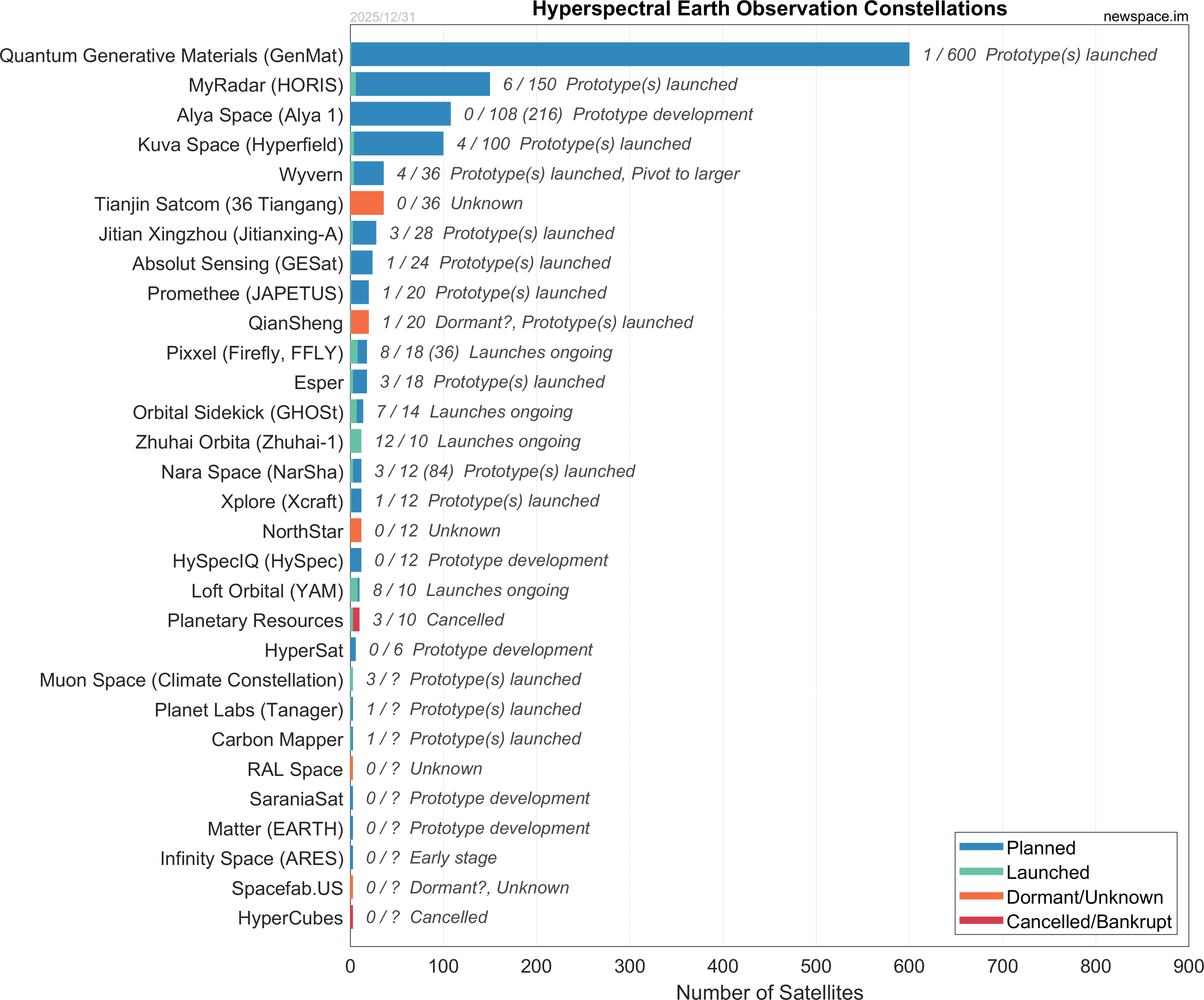 | Zhuhai Orbita (Zhuhai-1) | 12 / 10 | 2017 | Smallsat | Earth Observation, Hyperspectral | Yes | |