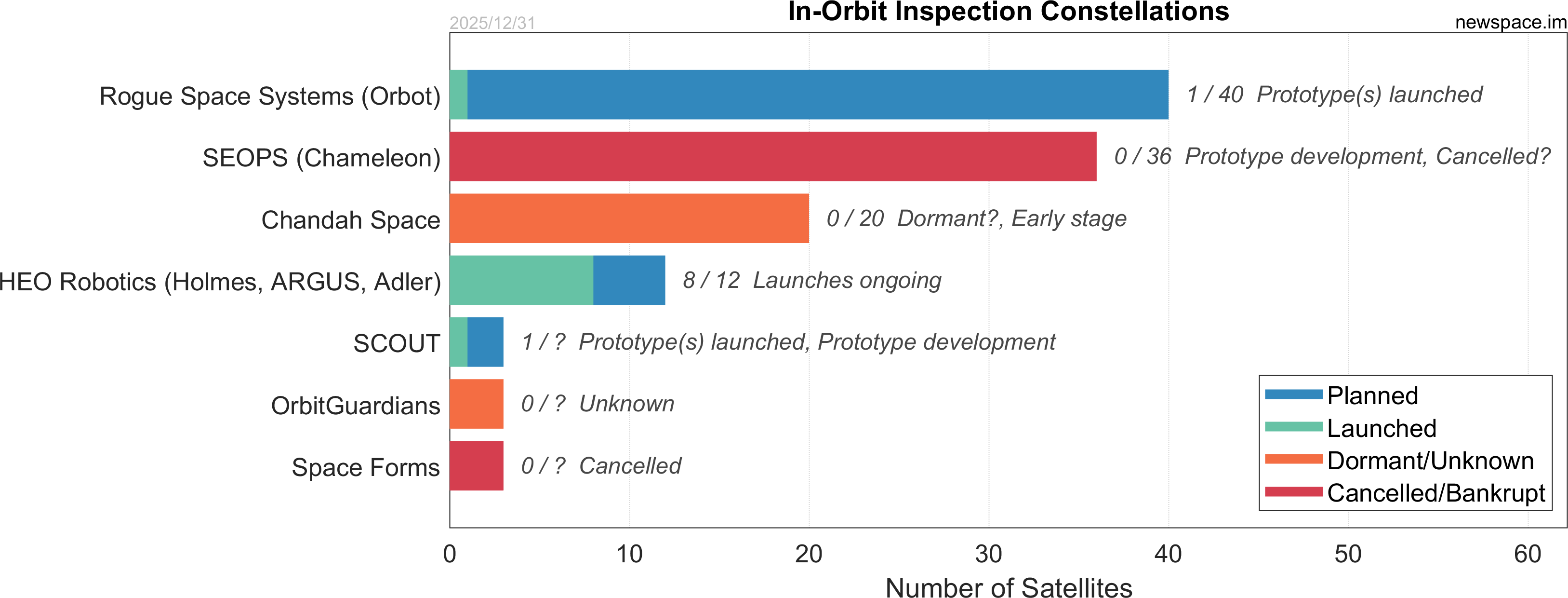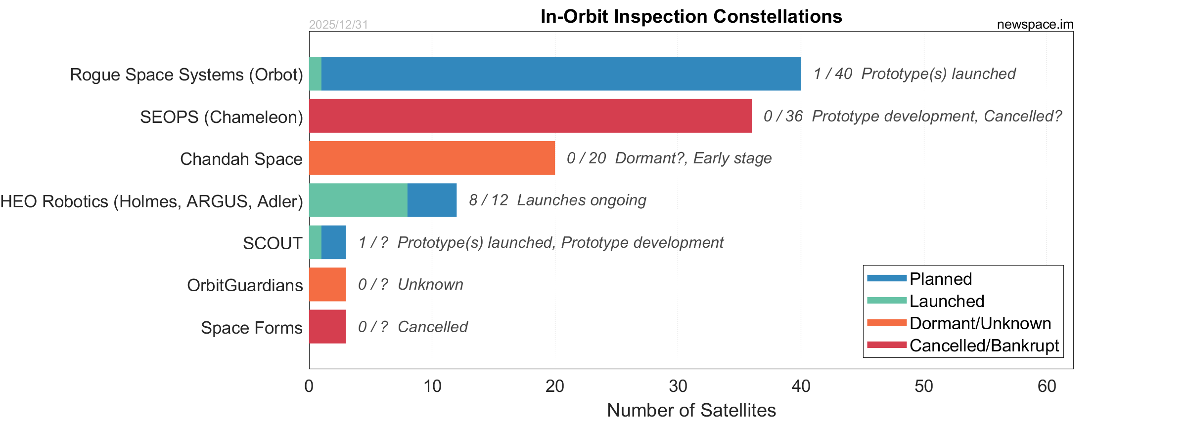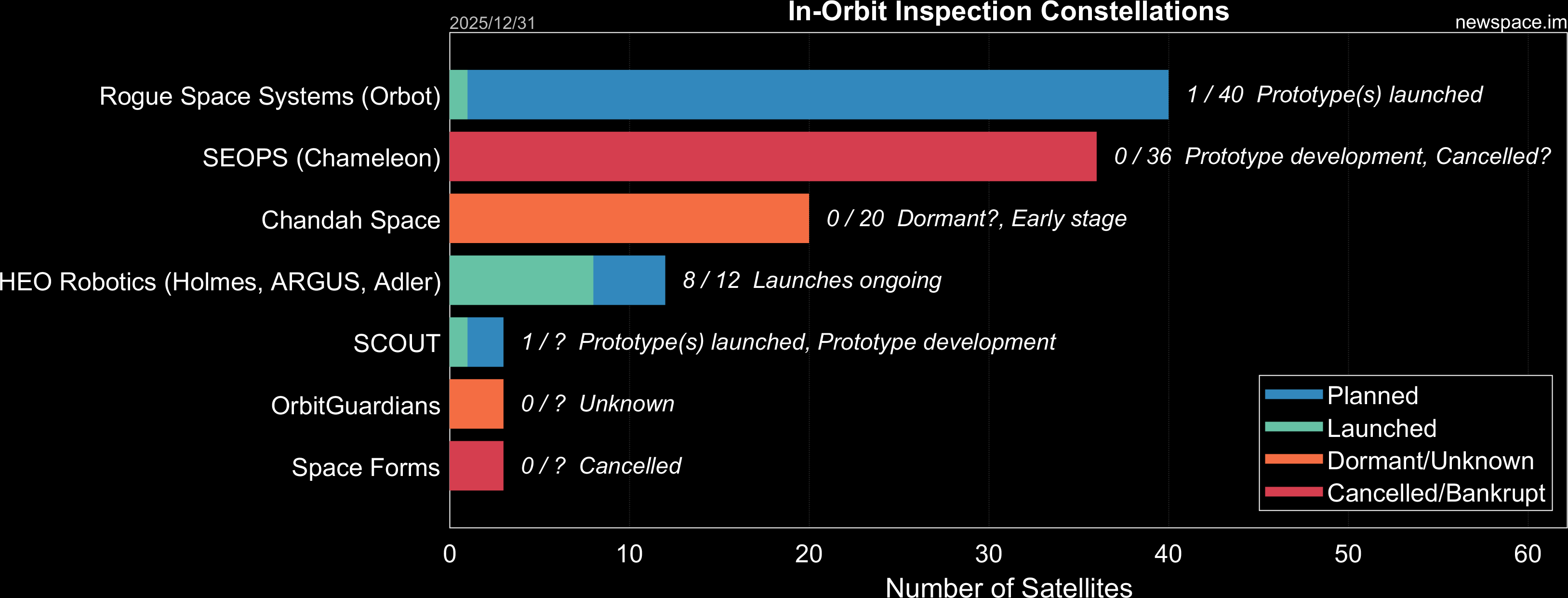 | Space Forms | 0 / ? | Cancelled? | CubeSat | SSA (Space Situational Awareness), In-Orbit Inspection | ? | |