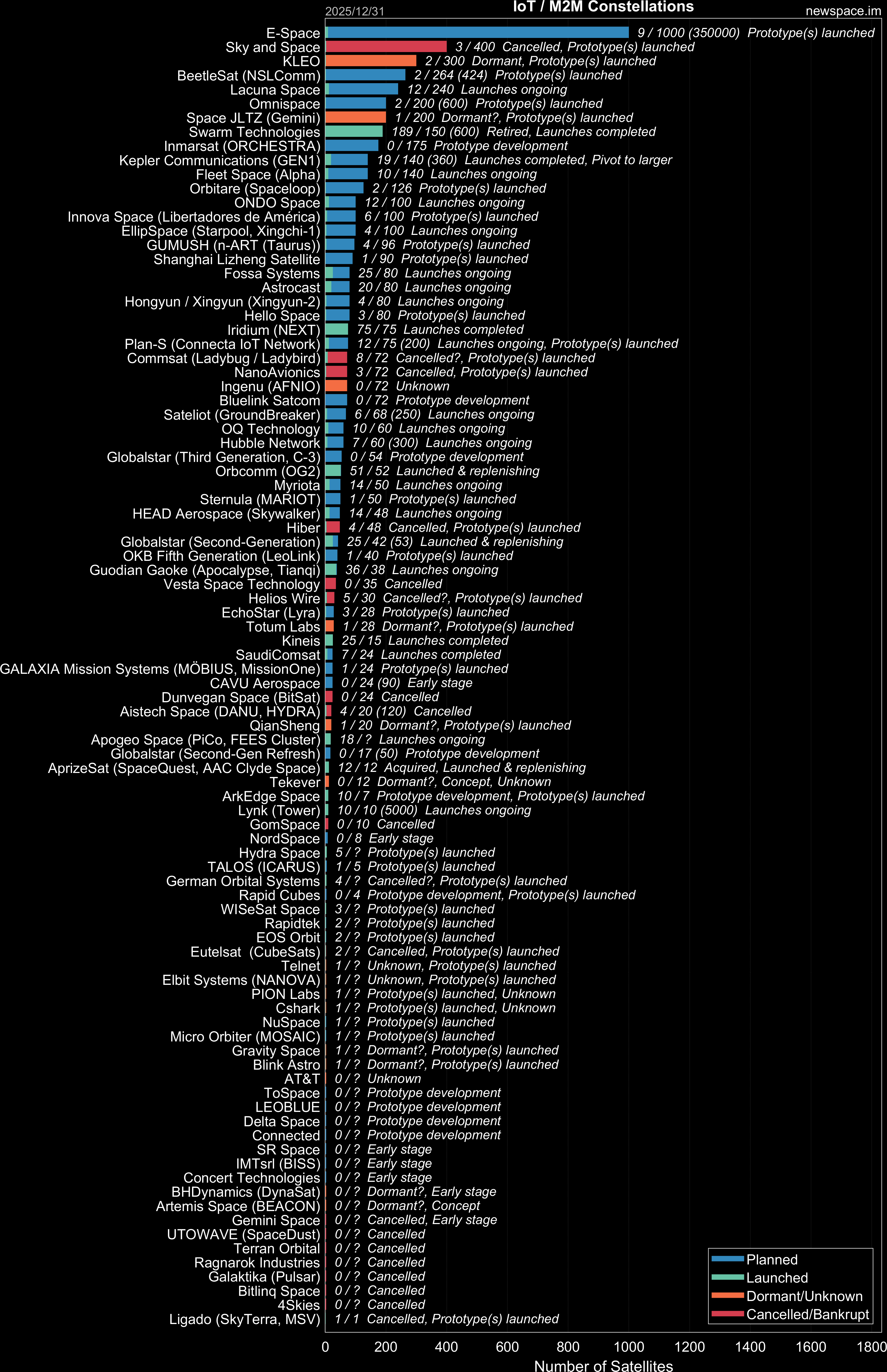 | Sky and Space | 3 / 400 | Cancelled? | 8U, 6U, 3U | IoT / M2M | $29.1M | |