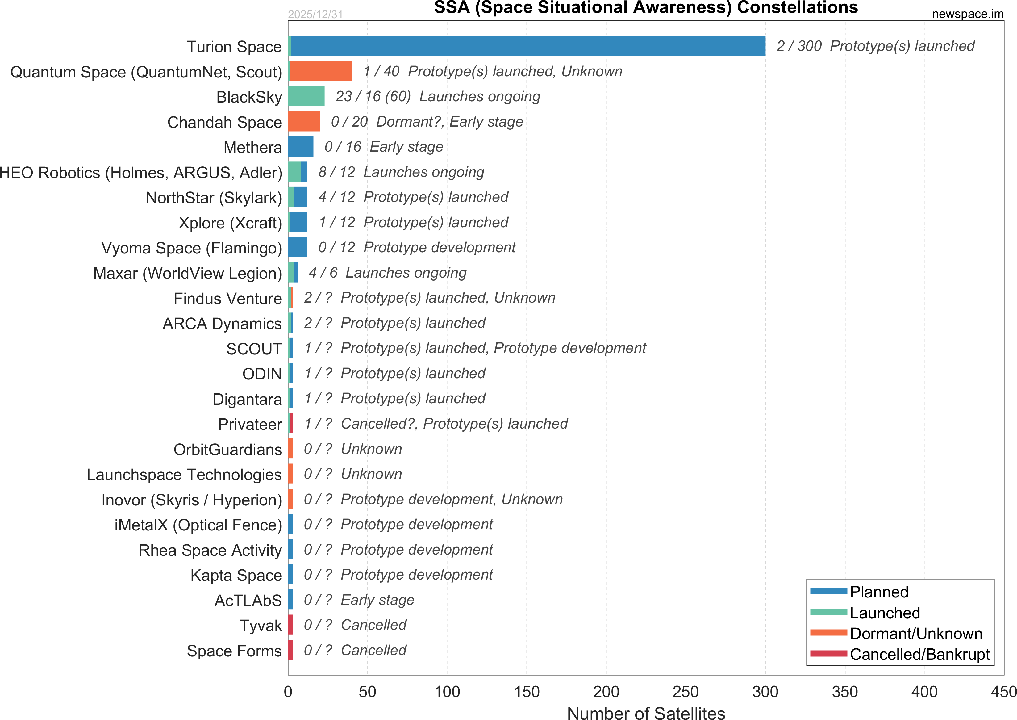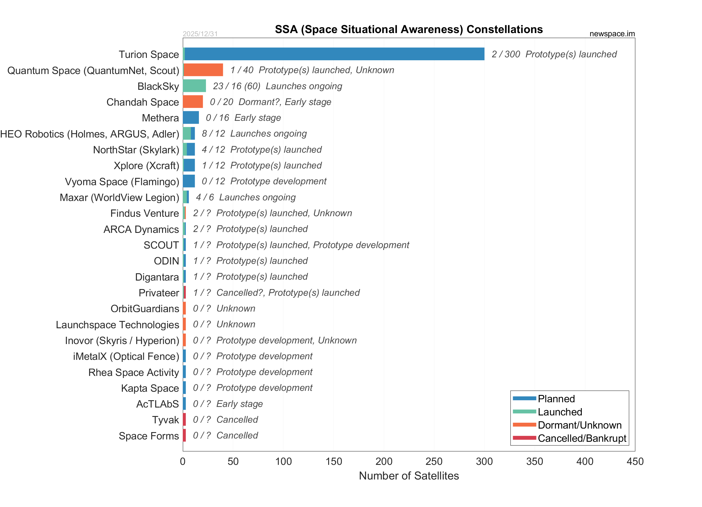 Categories to indicate the current status of satellite constellations by consolidating various publicly accessible information. In some cases, an educated guess has been made: