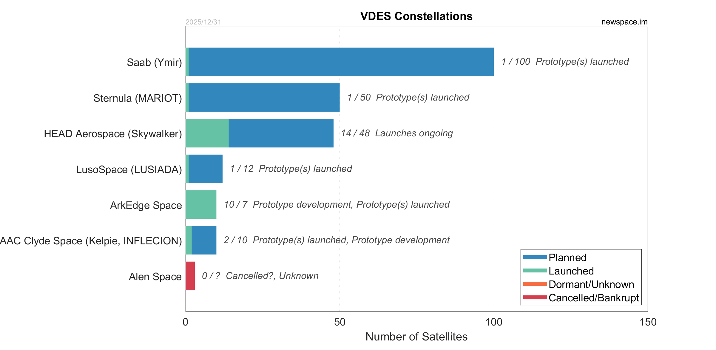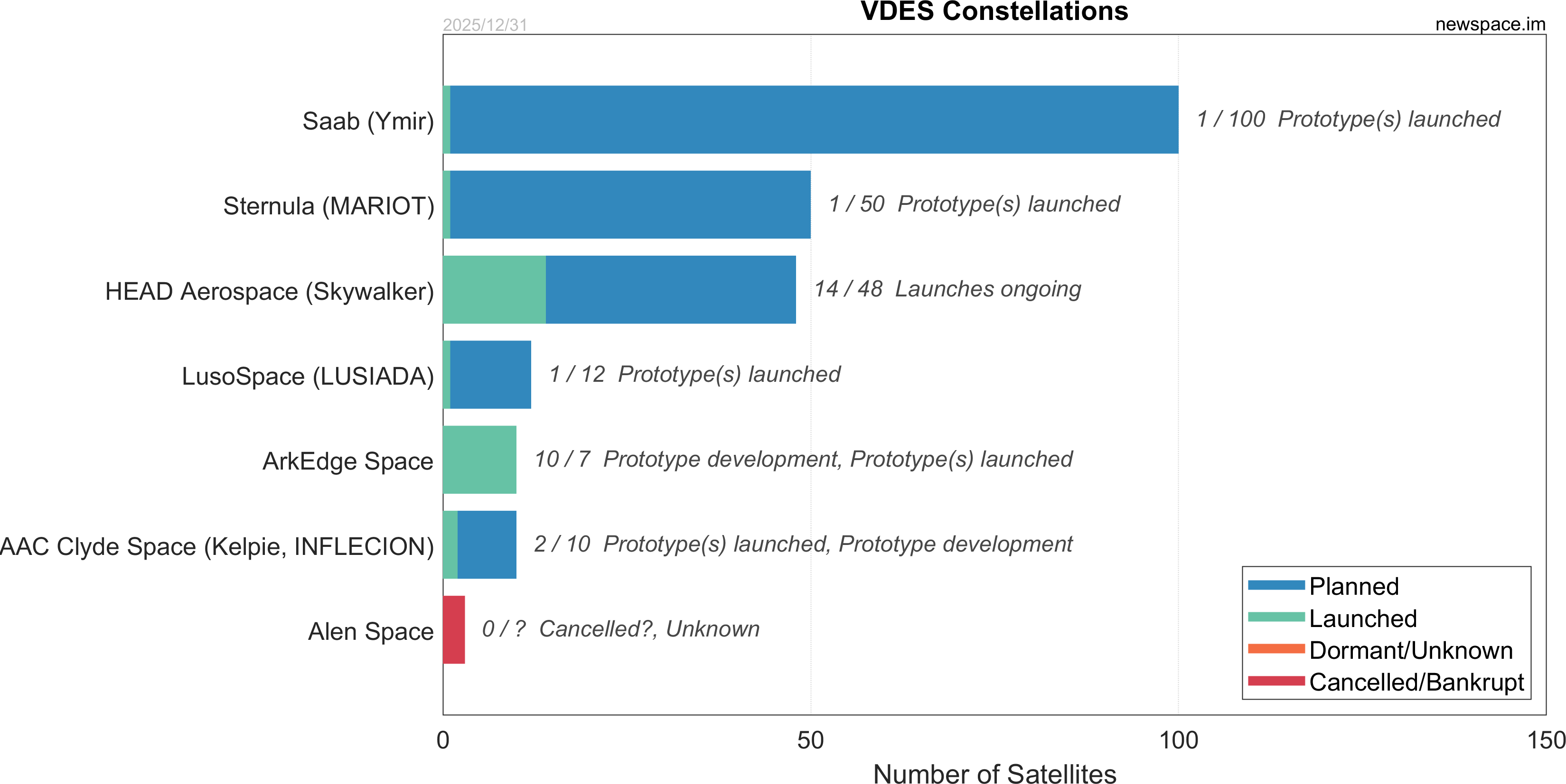 | Vesta Space Technology | 0 / 35 | Cancelled | ? | IoT / M2M, 5G, Internet | $10M | |