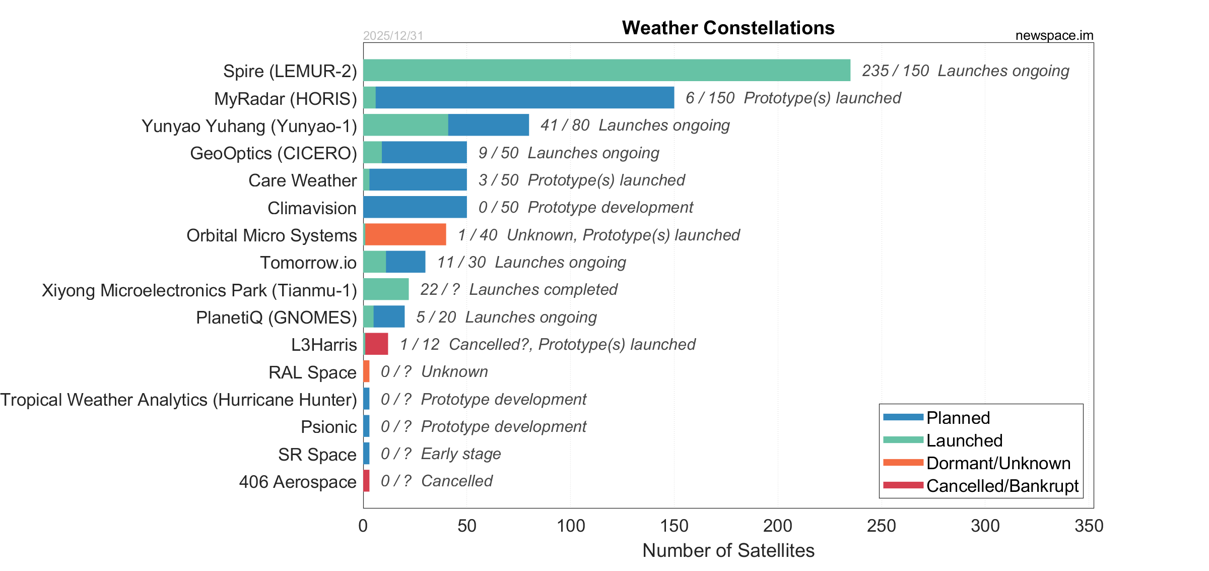 | Orbital Micro Systems | 1 / 40 | 2019 | 3U? | Weather | $4.2M | |