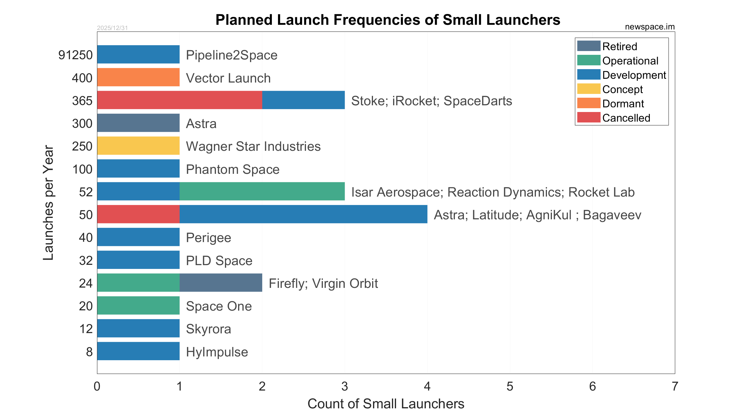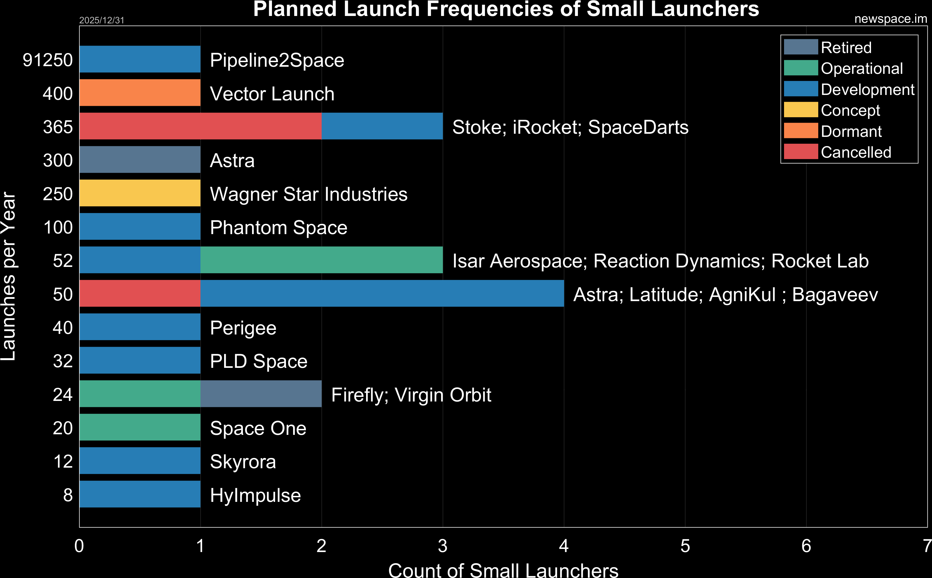 Cancelled - Website offline for years or no indication of the launcher any more or company bankrupt.